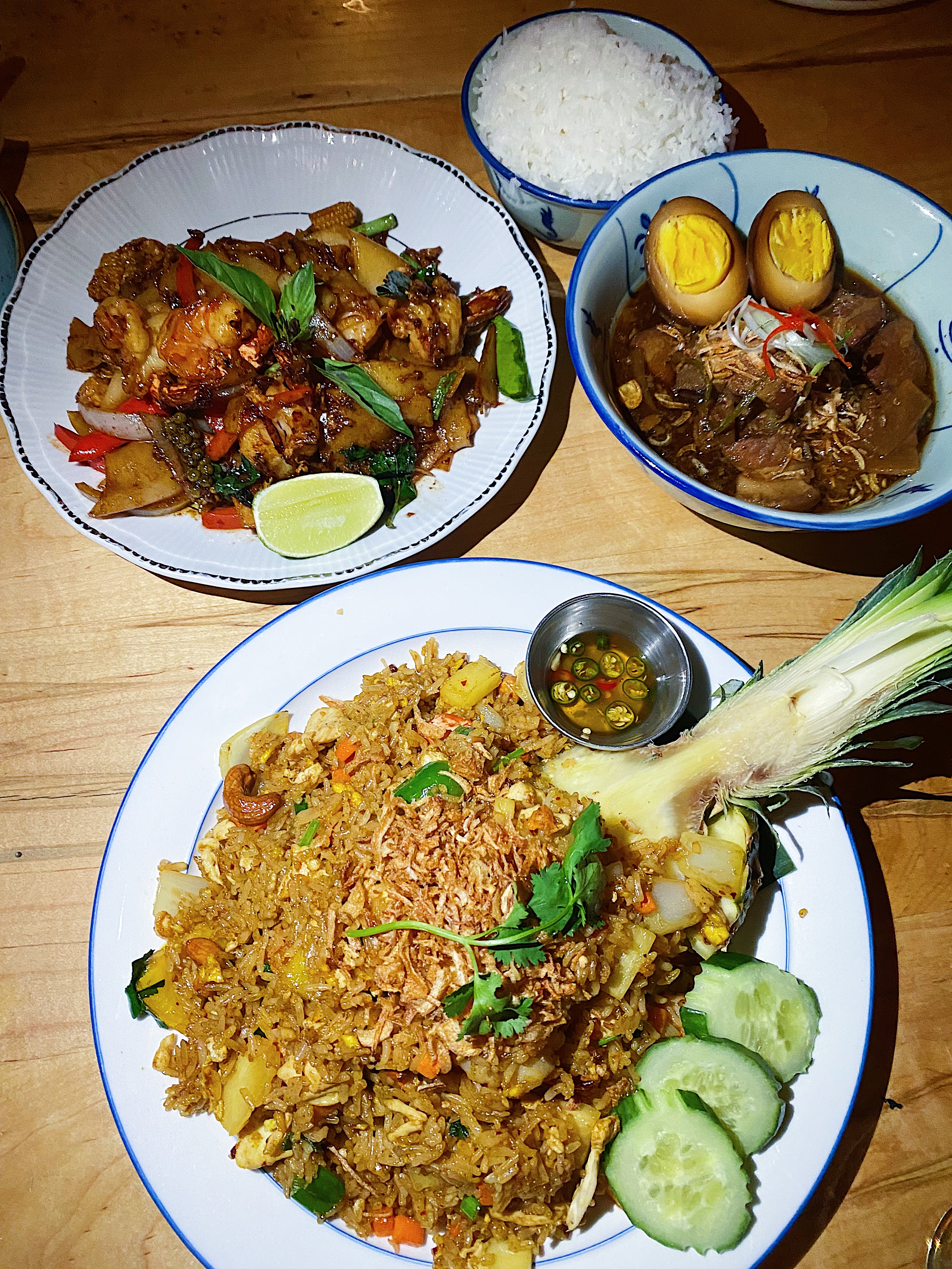 Drunken Noodles: There can’t be rice without noodles. Traditionally called Pad Kee Mao, the dish is Southeast Asian comfort food at its finest. It’s simple yet delicious with soy sauce, basil, peppercorn, and vegetables mixed in with those wide, flat rice noodles that swirl around your fork. This was a nice contrast to the more intensely flavoured dishes, which are delightful but sometimes need something calmer to balance things out.