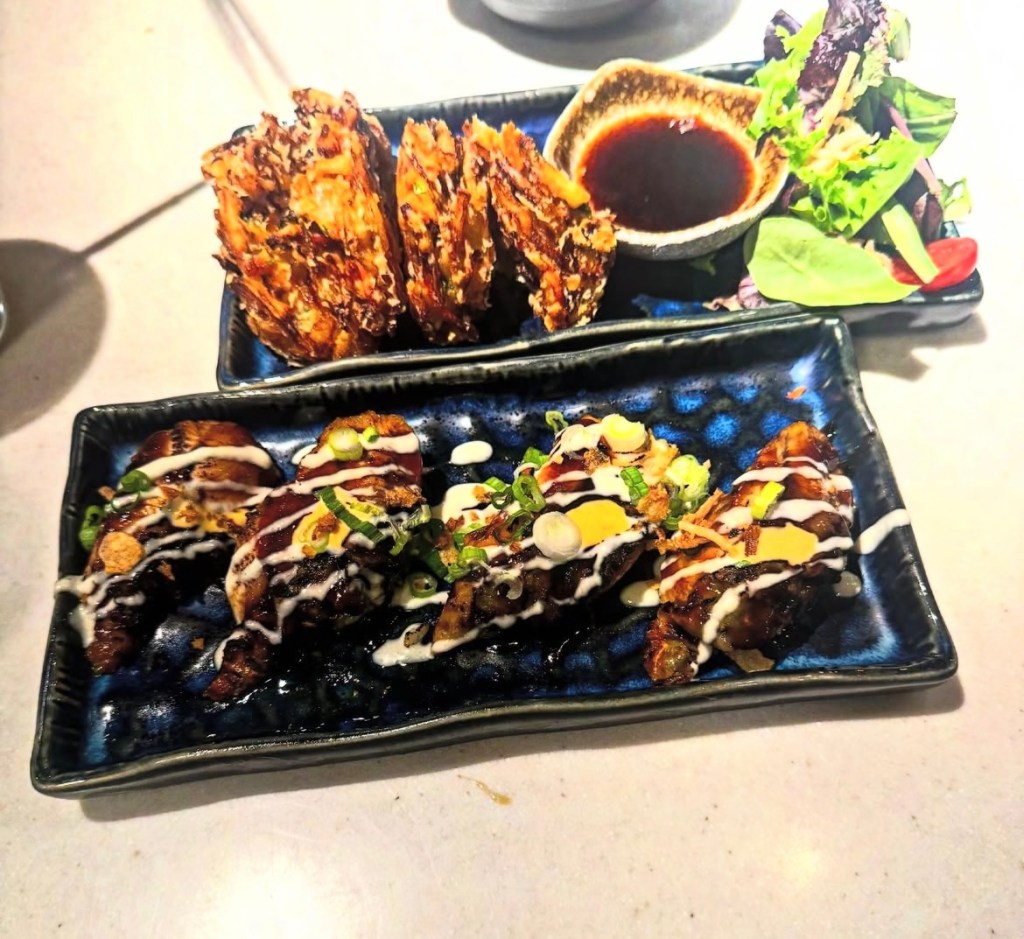 The appetizer lineup ranges from crisp salads to golden octopus balls and plump dumplings. We skipped the Tofu Salad this time (next visit!), and the shrimp dumplings were sold out, making the case as a good enough reason to return.
