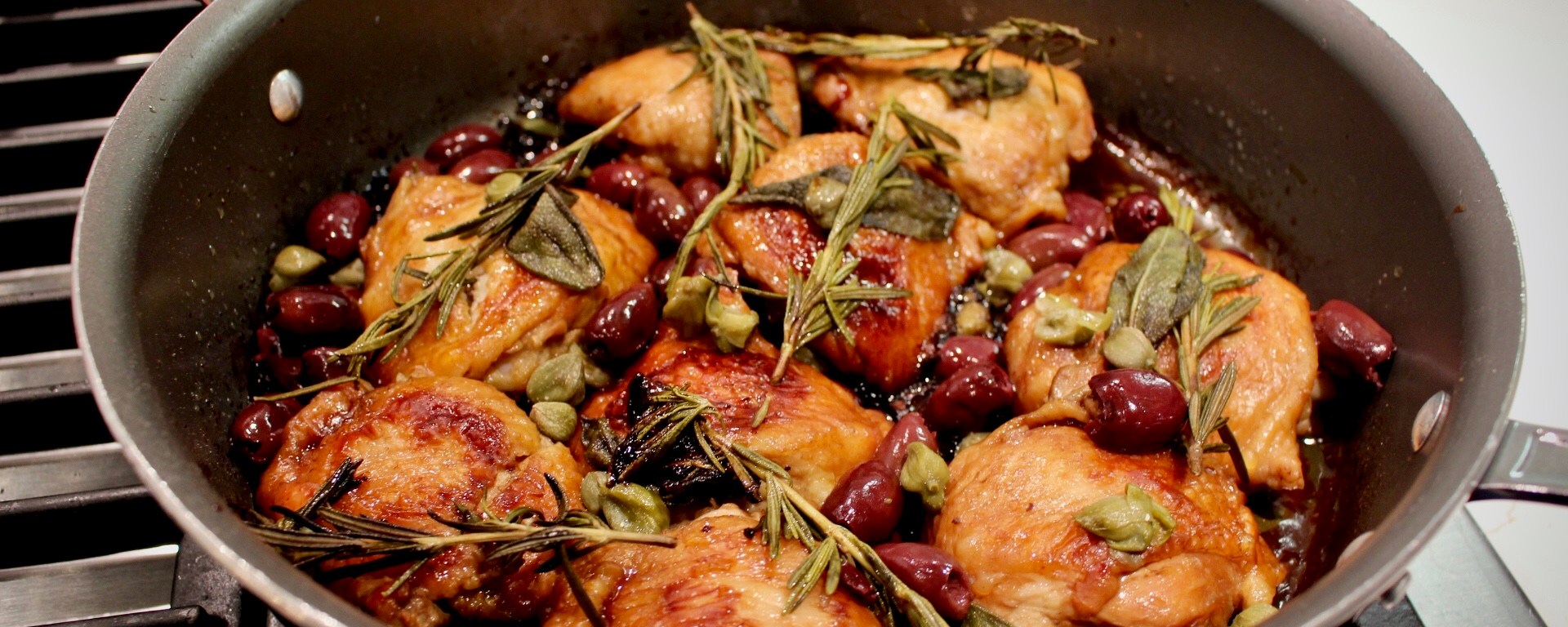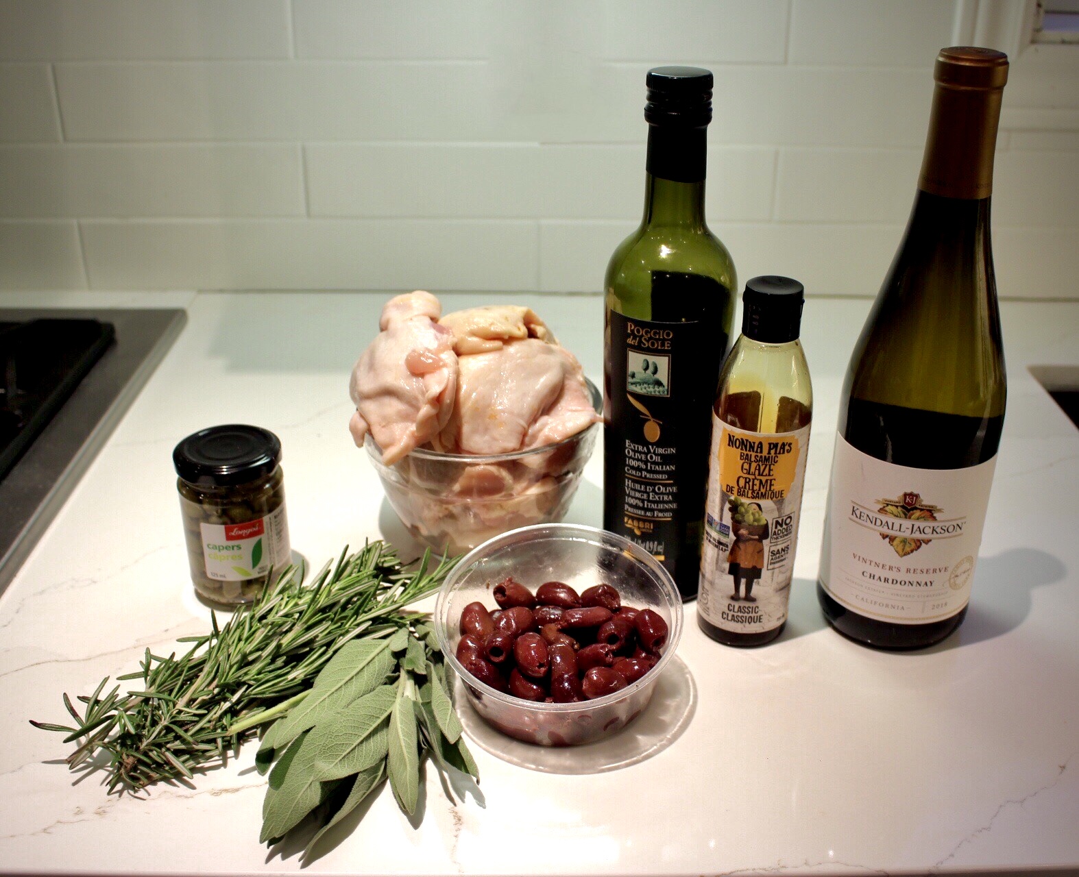 - Flip chicken and apply the rest of the wine, olive oil, and balsamic reduction, cooking for approximately 20-30 minutes.